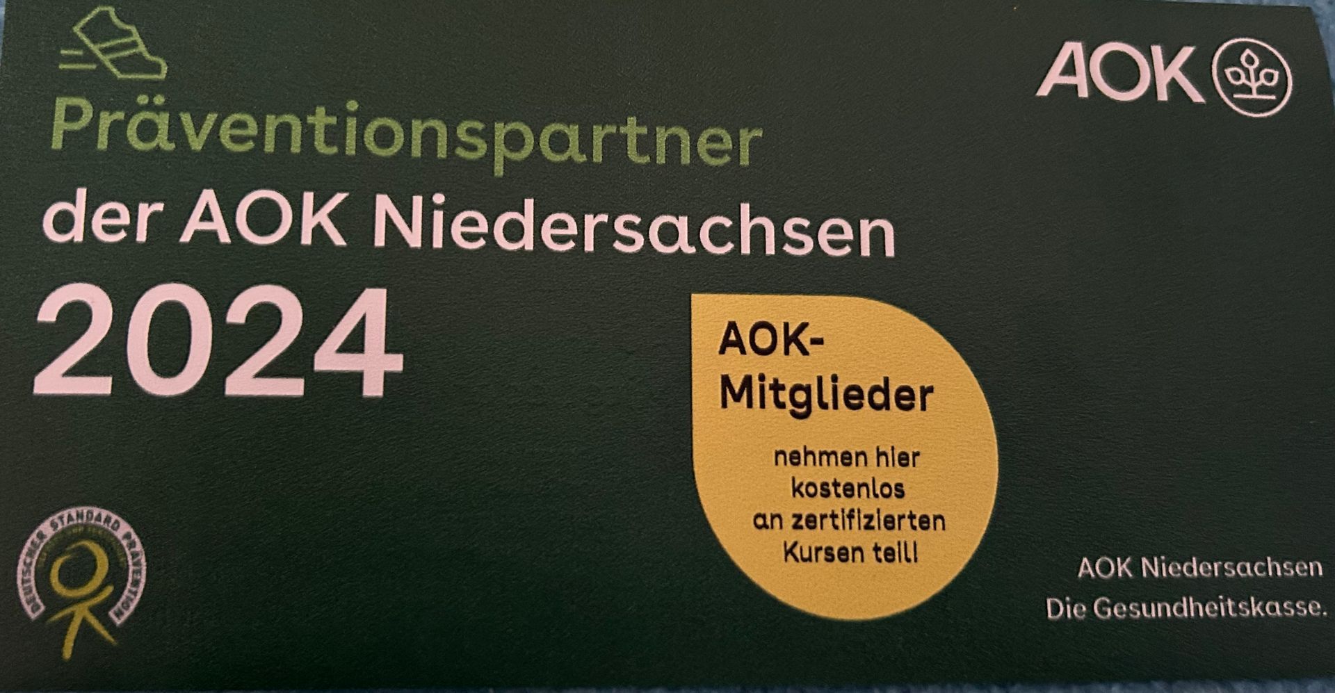 Ich bin ich Präventionspartner der AOK Niedersachsen.